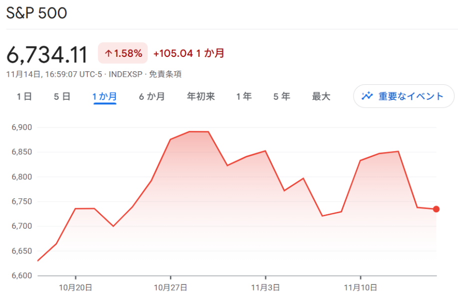 今週は米国政府の閉鎖が解除されました。その間、株価は割と堅調に推移したものの、週の後半からは一気に調整局面を迎えました。とは言っても、直近1か月のS&P500は+1.58%と上昇しており、直近のイメージ程悪くないと言えます。政府の閉鎖により、予定されていた雇用統計等の数値が公表見送りになったり、政策金利の決定にも影響を及ぼしています。S&P500・オルカン 最新情報。14日は-1%以上の急落、"利下げ期待後退"と"経済指標不足"が要因にFRB当局者のタカ派発言が相次ぐ、12月利下げ観測に揺 ...